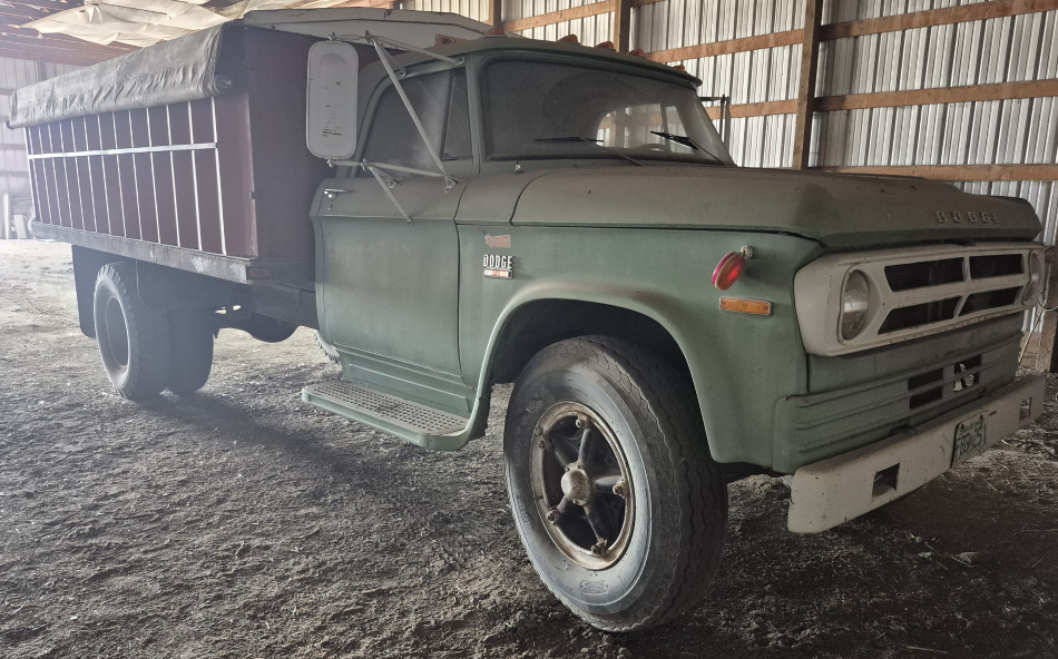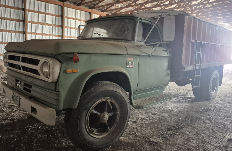 - *1973 Dodge A 500 grain truck, Roll tarp, 9.00 X 20" VG tires, 43,000 miles