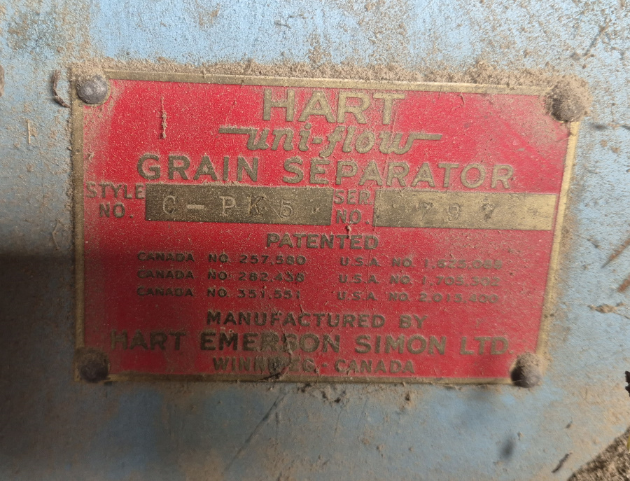 - *Hart Uni-Flow C-PK5 grain cleaner/separator, double sided pic of tag