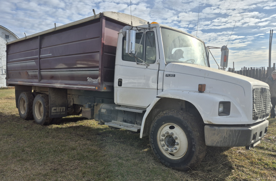 - *2002 Freighliner FL180 tandem grain truck, automatic transmission, 295/75R22.5 tires,