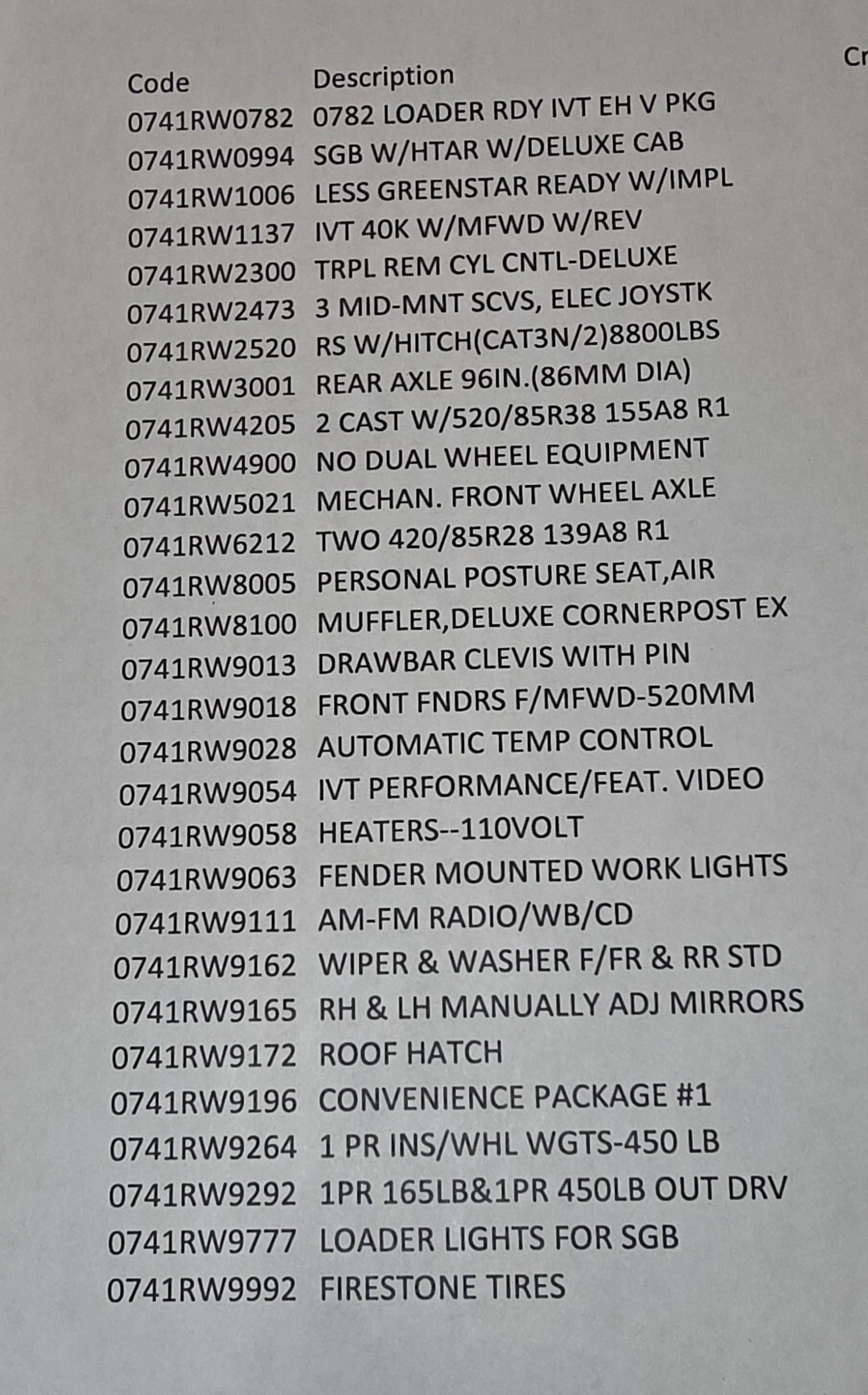 420/85R28 front tires, 520/85R38 rear tires/weights, 5015 hours SN RW7520D062648