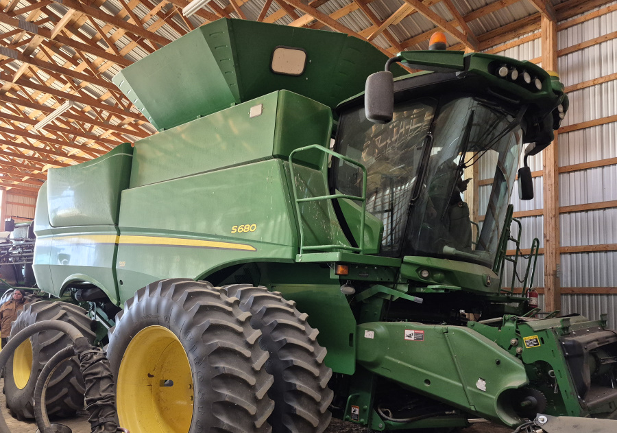 - *2013 John Deere S680 combine, dual front tires, hopper top extensions, 2869 engine hours,
