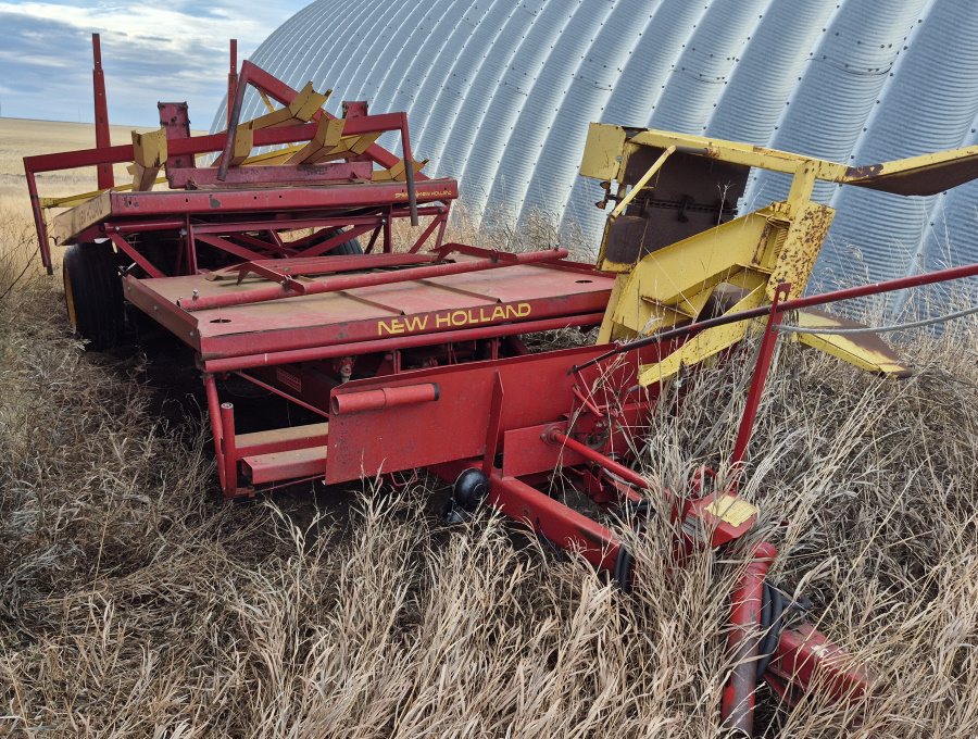 - *New Holland #1002 Stackliner bale wagon, sides down for transport